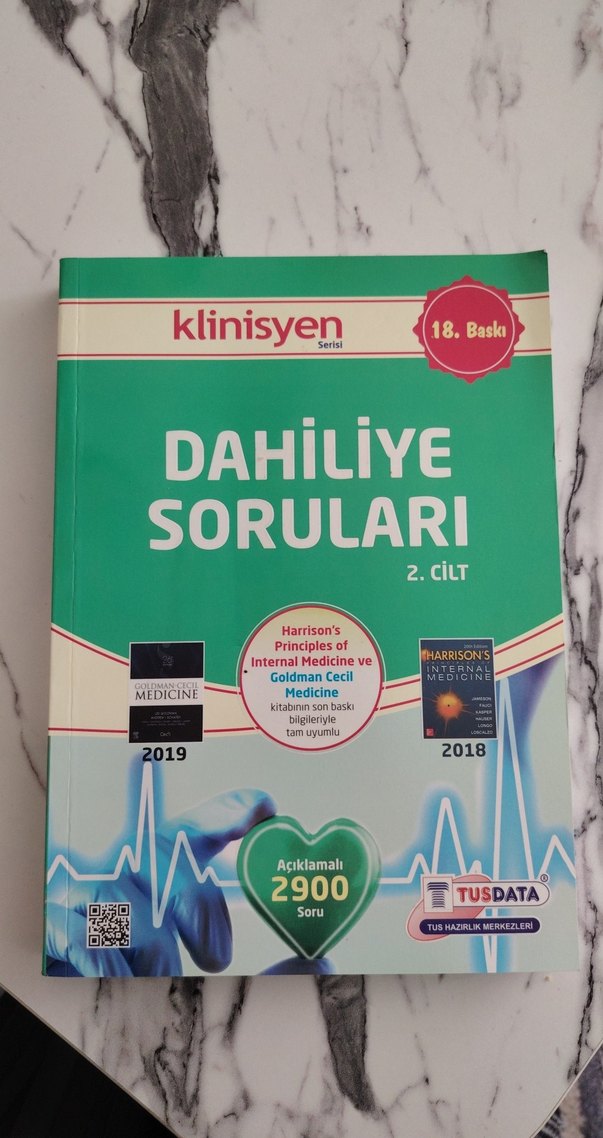 Harrison's ve Goldman Cecil Medicine'in 2018-2019 baskılarına tam uyumlu, açıklamalı 2900 dahiliye sorusu içeren 18. baskı, 2. cilt kitap.