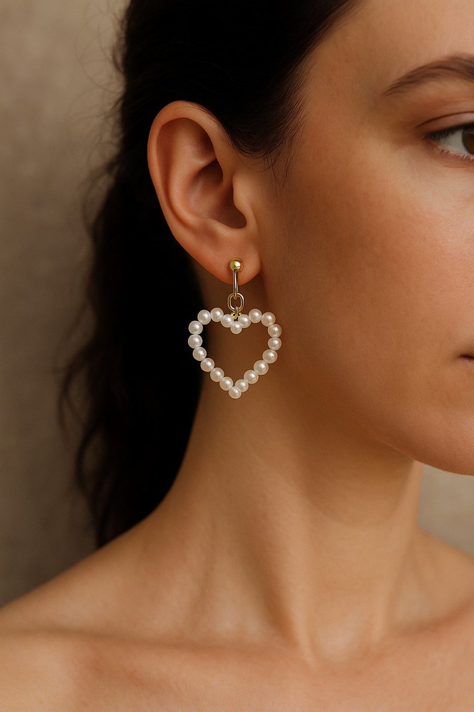 Ürün klipsli dir. Altın renkli saplama ve beyaz boncuk inci detaylı mini kalp şeklinde küpe, romantik akşamlar için uygundur.