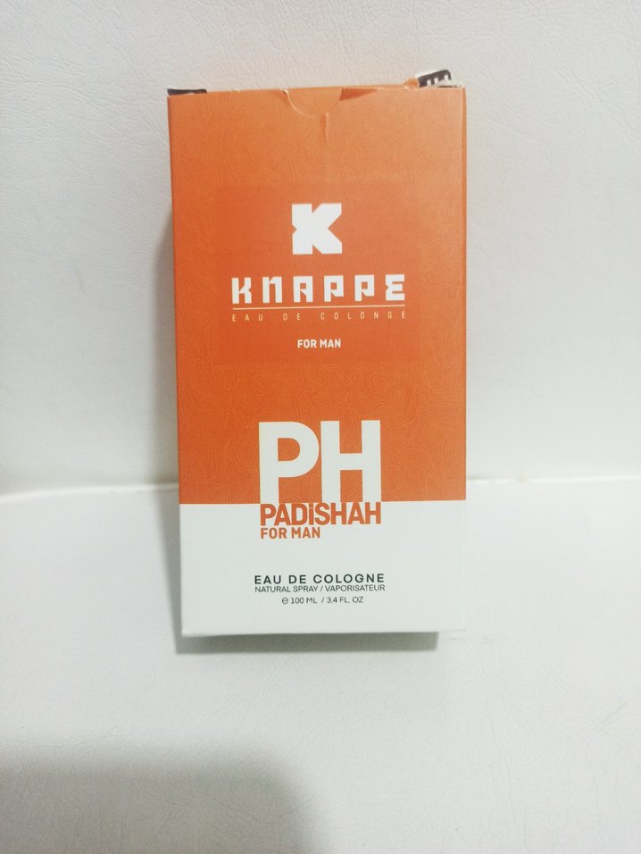 Knappe PH Padishah erkek kolonyası, bej ve turuncu kutuda, hafif ve ferah bir koku sunar. 100 ml eau de cologne'dur.