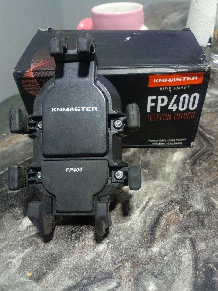 KNMASTER FP400 siyah telefon tutucu, sağlam tutuş ve ayarlanabilir kollarla çeşitli telefon boyutlarına uyum sağlar. Güvenli ve sabit kullanım için tasarlanmıştır.