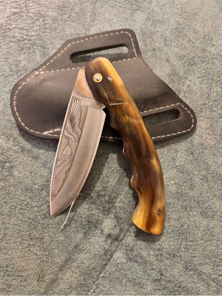 Koç boynuzu kabza kartal gravür işlemeli tek taraf işlemeli manuel kilit sistemi