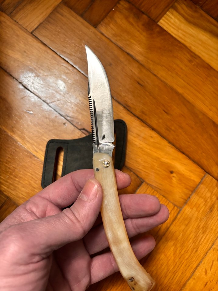 Koç boynuzu kabza 440C çelik manuel açma kaplama kılıflı ürün