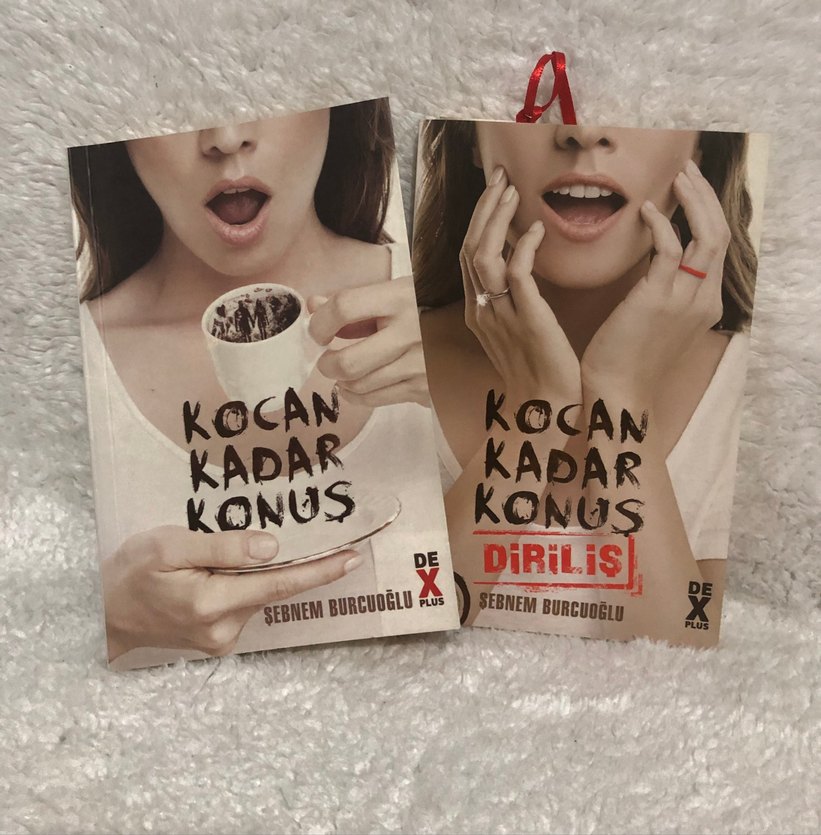 Şebnem Burcuoğlu'nun yazdığı 'Kocan Kadar Konuş' ve 'Diriliş' romanlarından oluşan set, yüz ifadeleriyle dikkat çekiyor.
