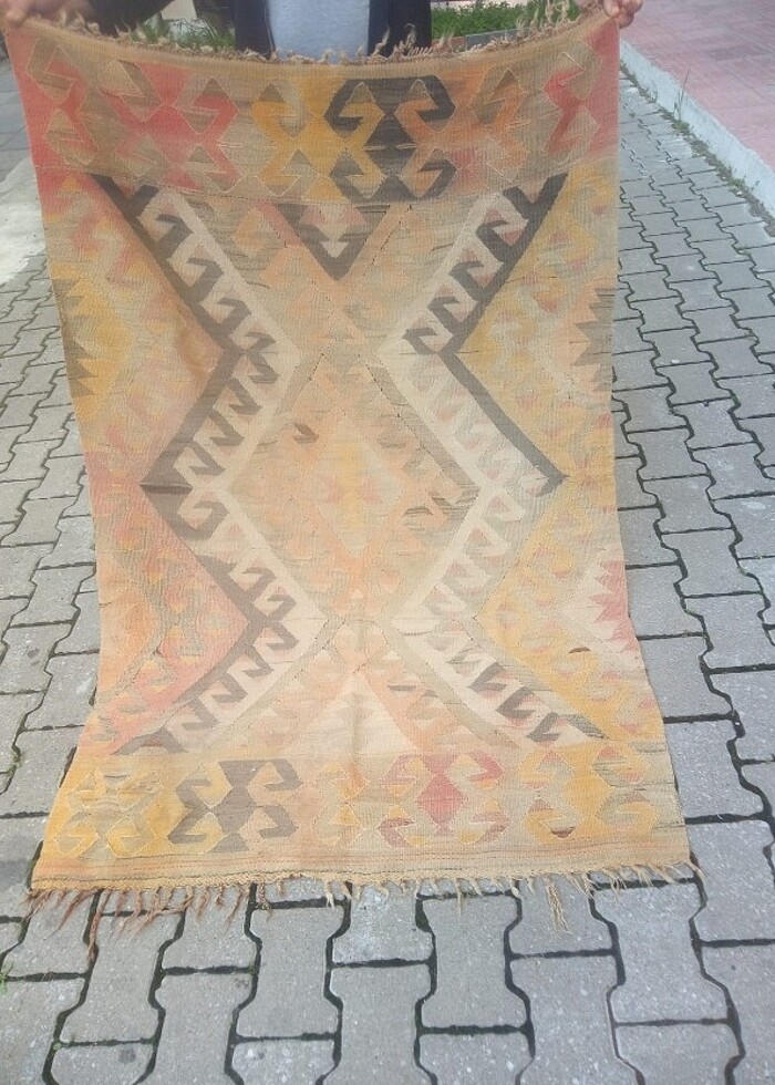 Nadide bir parça vintage kök boya antika el dokuma kilim