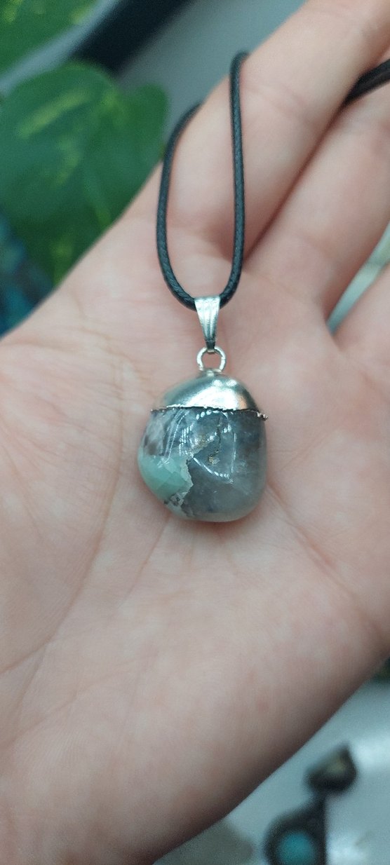 Kampanyalı Kök Zümrüt ve Kuvars Birlikteliği Kolye Ucu Ayarlanabilir Deri İpli