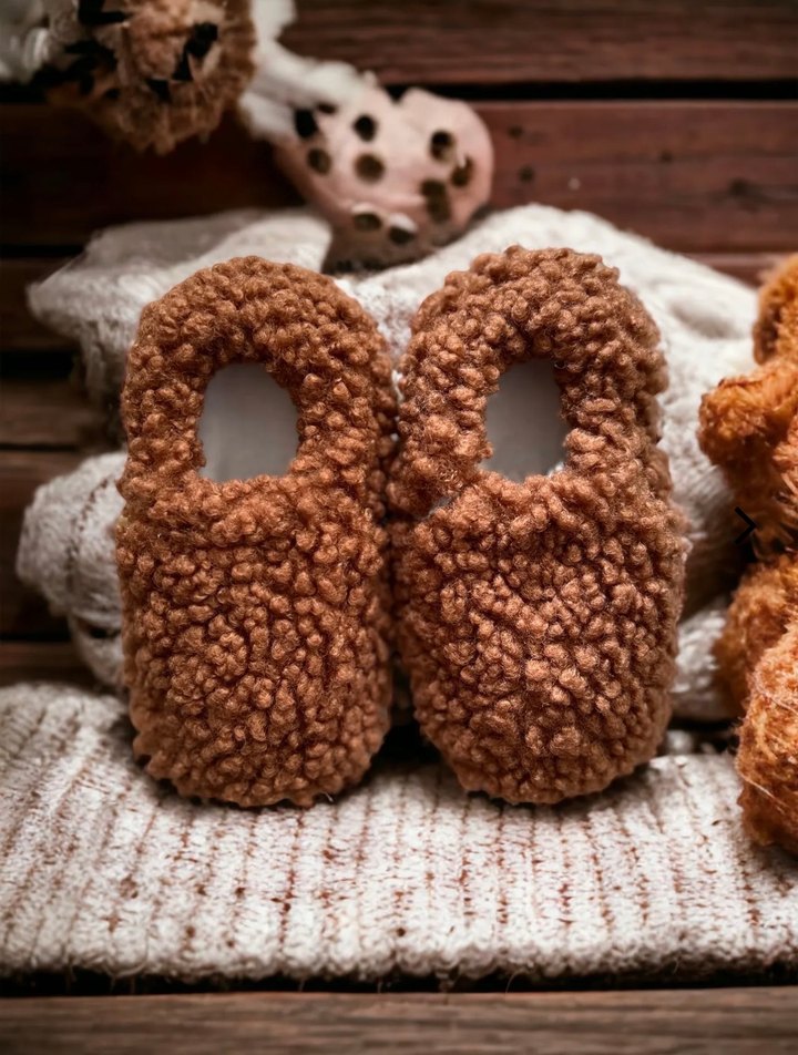 Kahverengi örgü yünden kız çocuk terliği, sıcak ve rahat tutan yumuşak yapıya sahiptir. Ev içinde ayakları sıcak tutar. 2 kez kullanıldı. Tertemiz duruyor. Kutusuyla göndereceğim