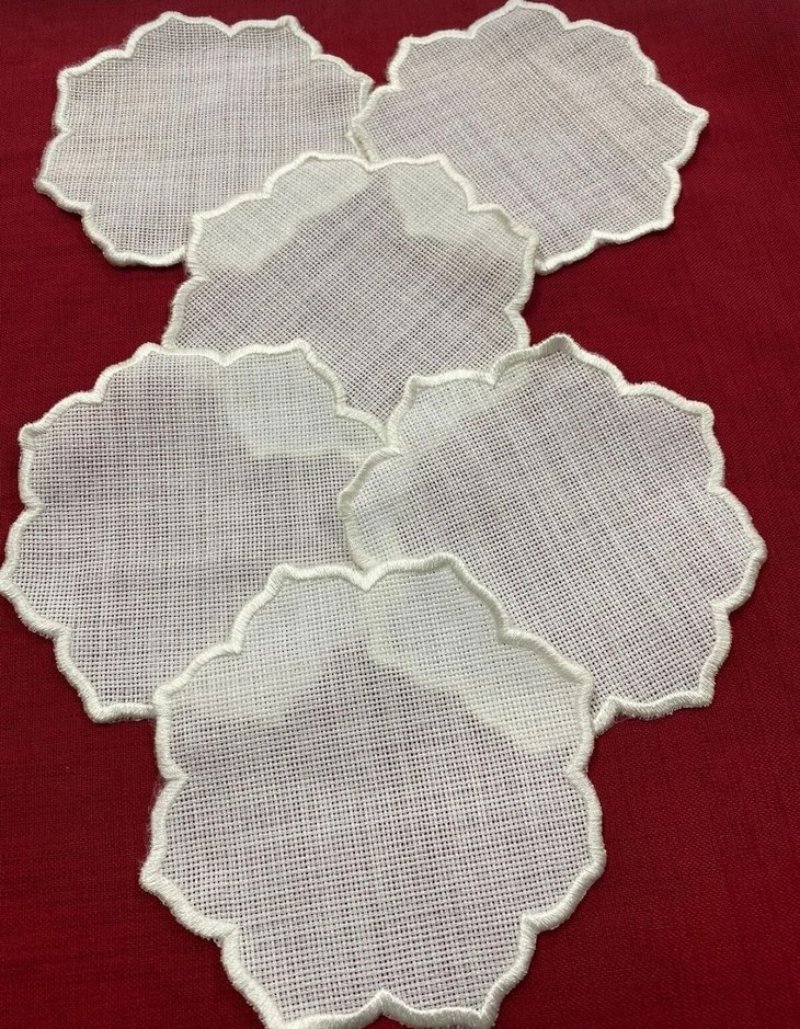 Geleneksel tarzda, gri işlemeli kenarlara sahip beyaz masa örtüsü. Zarif dalgalı tasarımla masa düzenine şıklık katar. istenilen işleme yapılır "googleden örnek alarak koydum"