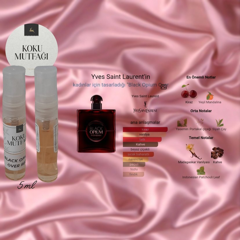 Ürünü "Koku Mutfağı" mağazasından shopier üzerinden satın almıştım. Koku Mutfağı, neredeyse hepimizin bildiği açık parfüm markası olan "Muscent"in shopier mağazası. Neredeyse hiç kullanılmadı, görseldeki kadar dopdolu. Yves Saint Laurent markasının Black Opium parfümünün Over Red flankerına muadil üretilmiş bir parfüm. Sonbahar ve kış kullanımına uygun; oldukça kadınsı, çekici ve sıcak bir parfüm. Genel hissiyatını ve notalarını görsele ekledim. Marka temsilidir. Hijyen kurallarından ötürü iade kabul etmiyorum, bunu bilerek alınız.