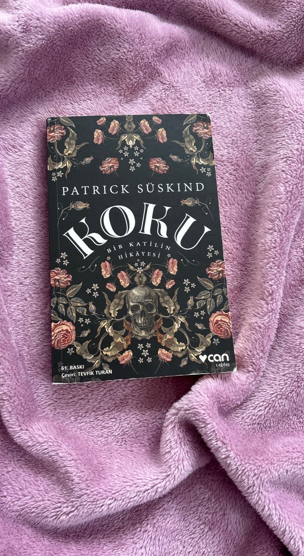 Patrick Süskind'in Koku kitabı, katilin hikayesini anlatan çiçek desenli kapaklı bir roman. Can Yayınları, çeviri: Tevfik Turan.