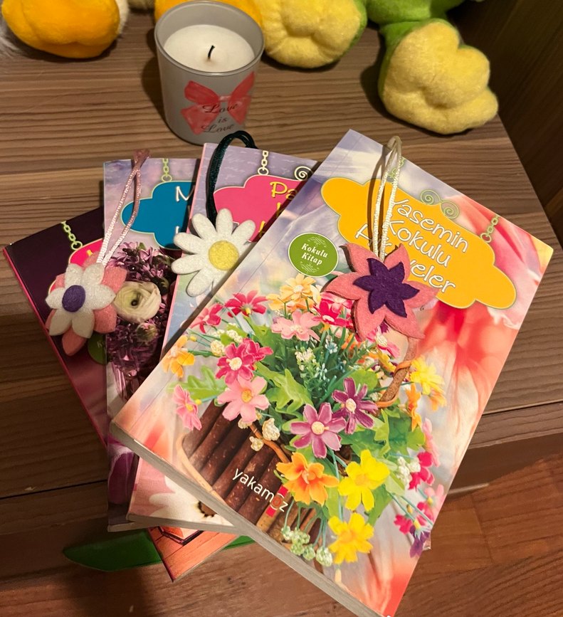 Renkli çiçek desenlerine sahip bohem kitap ve ayraçları, kokulu sayfalar