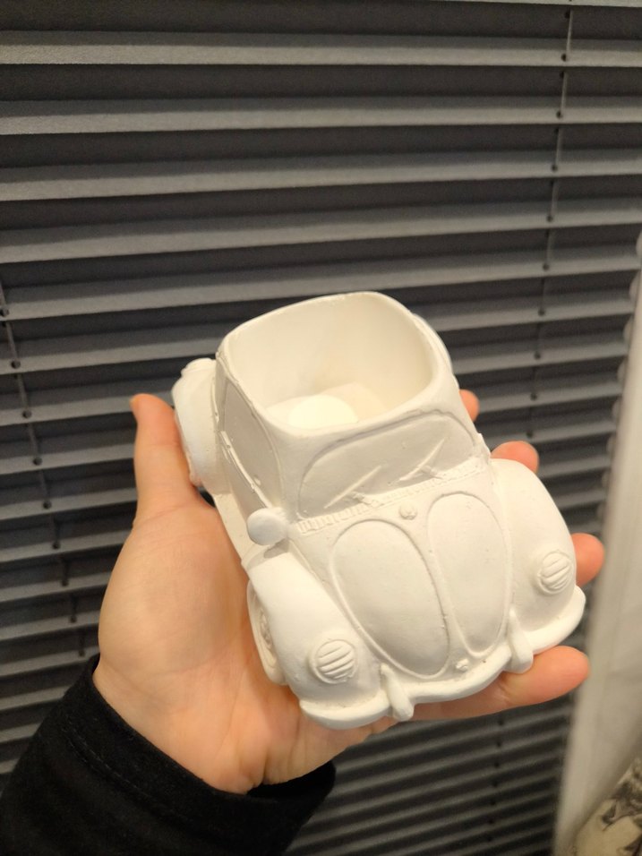 Beyaz renkte, pürüzsüz tasarımlı oyuncak araba. Saksı, toka kutusu olarak kullanılır. istediğiniz renk boyayıp kullanabilirsiniz. ham halidir. isterseniz 1 adet daha bulunmakta.