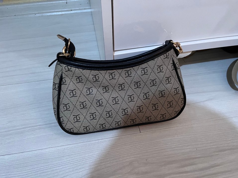 Kadınlar için yılan desenli, tokalı çanta. Yumuşak sentetik kumaştan, klasik zarafet ve Paris sokak tarzını yansıtır. Kahverengi ve gri tonlarında, günlük kullanıma uygun.