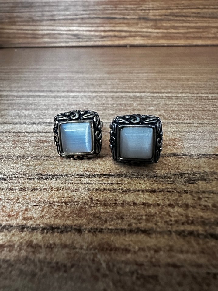Gri-mavi taşlı, vintage tarzda, gotik görünümlü kare erkek dugme .