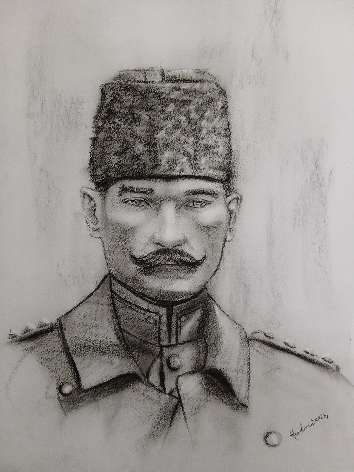 35x50cm Kömürkalem İmzalı✒️. Genç Atatürk osmanlı ordusunda Yüzbaşı rütbesinde.