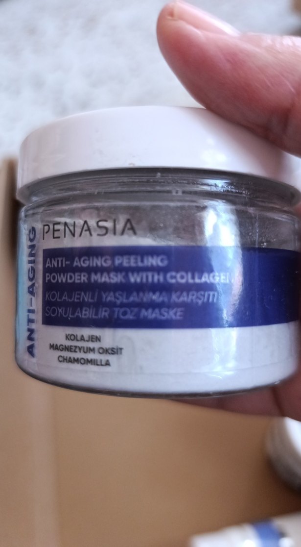 Kolajen, magnezyum oksit ve papatya içeren yaşlanma karşıtı soyulabilir toz maske. Ciltte yaşlanma etkilerine karşı etkilidir.