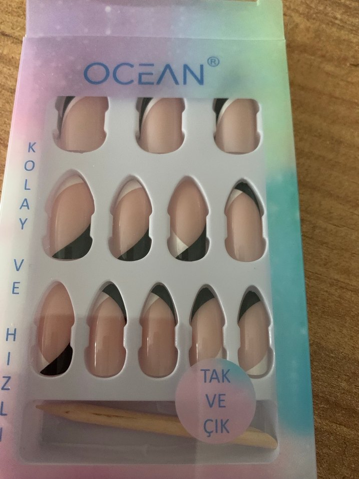 kolay takılıp çıkarılabilen tırnak seti. Ahşap uygulama aracı dahildir.