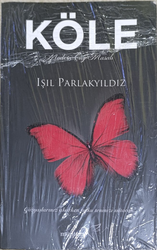 Kole adlı kitabın kapağında koyu kırmızı kelebek ve zarif yazılar yer alıyor. Kapak üzerinde koruyucu plastik kaplama bulunuyor.