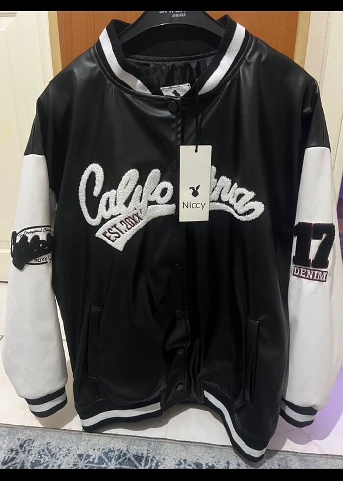 Deri görünüm kolej ceket yeni etiketli