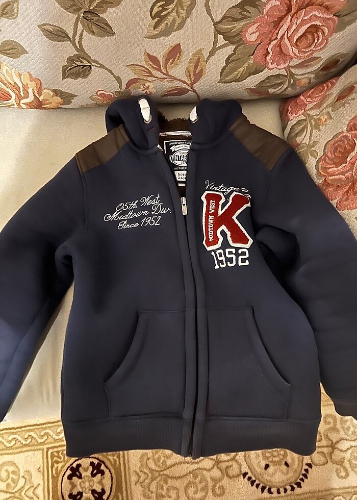 Az kulanıldı kapüşonlu fermuarlı