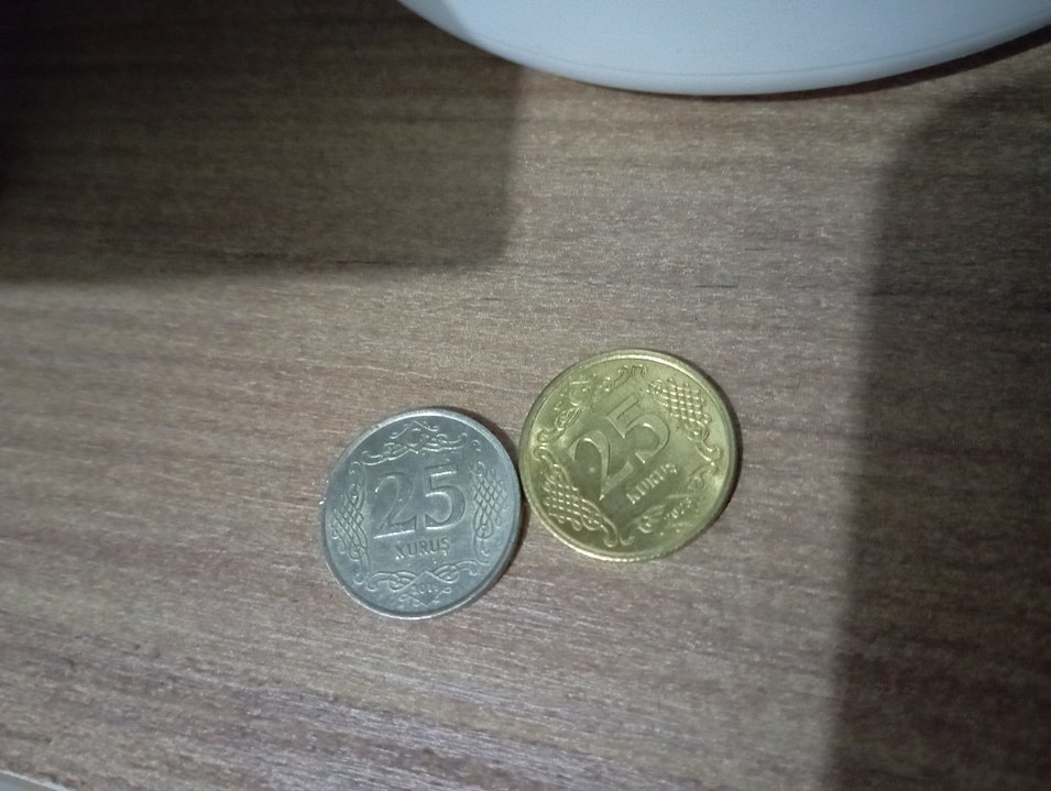 Sağ taraftaki altın renkli 25 krş satılıktır diğeri renk farkını belirtmek için dekor amaçlı konulmuştur. Gerçek fotoğraftır. 2023 basım.