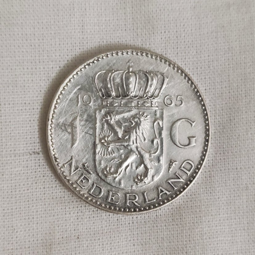 1965 tarihli Bir Hollanda gümüş Gulden'i. altı buçuk gram ağırlığında 8-9 'luk bir kondisyonda koleksiyon parçası.