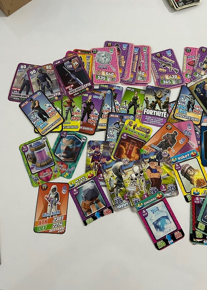 Koleksiyonluk pubg kart Koleksiyonluk fortnite kart Koleksiyonluk futbolcu kart Koleksiyonluk class royale kart Koleksiyonluk clash of clans kart Koleksiyonluk kartlar. Toplu alım da yapabilirsiniz. Koleksiyon koleksiyon da alabilirsiniz. Soru sorabilirsiniz. Fiyat tekliflerine açığım. Toplu alımda indirim yapılır....