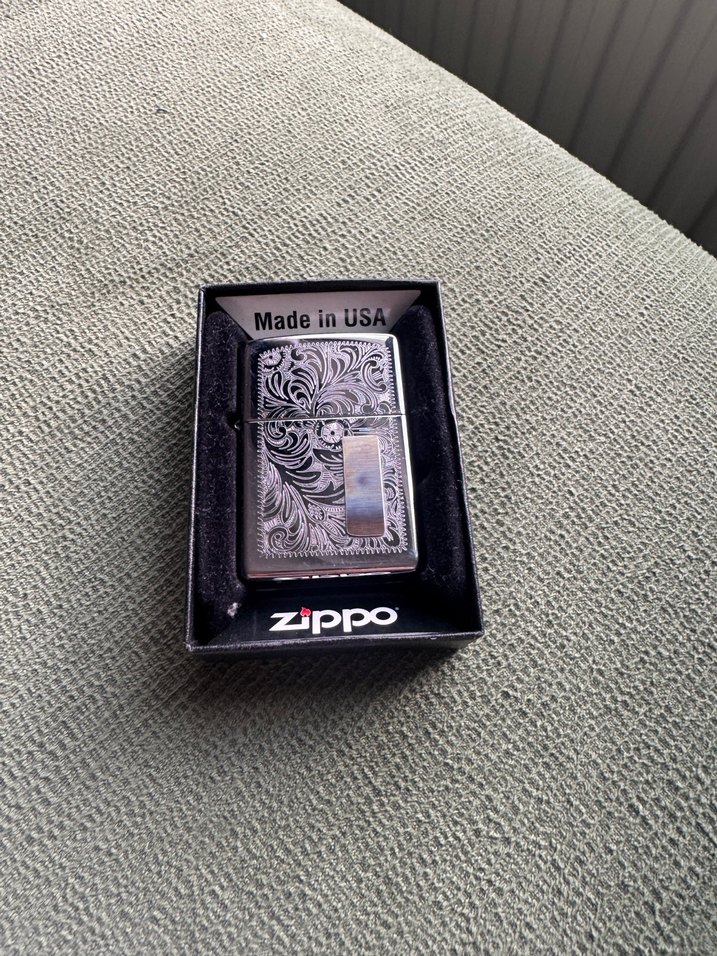 ABD yapımı, vintage desenli gri Zippo çakmak, klips detaylı. Biker tarzı sevenler için uygun. ️