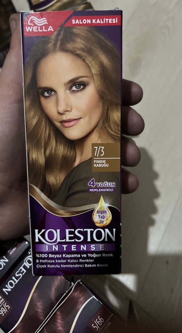 Koleston Intense 7/3 saç boyası %100 beyaz kapama ve yoğun renk sağlar. Argan yağı ve çiçek kokulu nemlendirici bakım kremi içerir, 8 haftaya kadar kalıcı renk sunar. Son 3 adet