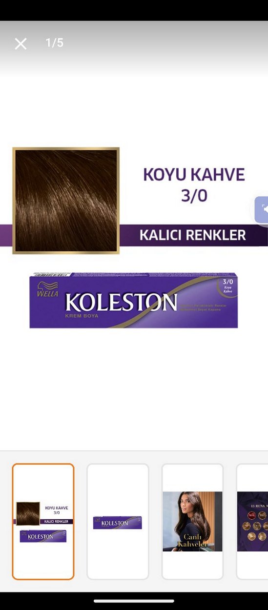 Koleston krem formüllü kalıcı saç boyası, koyu kahve 3/0 tonunda yoğun ve uzun süre kalıcı renk sağlar.