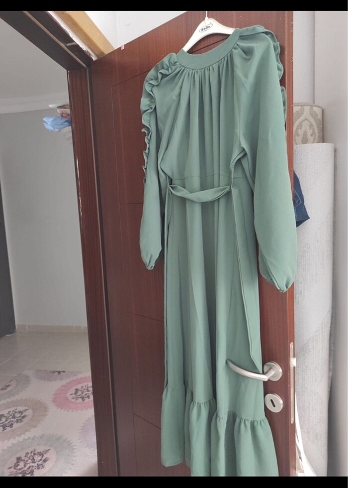 Kolları fırfırlı tesettür elbise