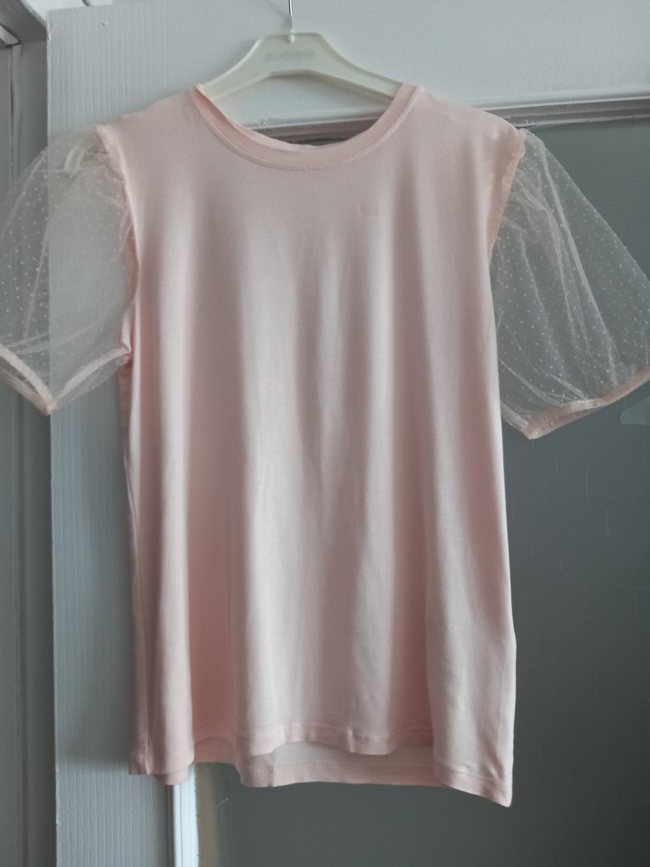 #tsihirt Ürün iyi durumda, yeri penye,esnek, kolları jarpuz kol modeldir ve tüldür..Rengi toz pembe, koyu pudra rengi diyebiliriz..Şirin bir t-sihirt.. Boyu : 59 cm..İki koltuk altı arası: 48 cm ama 60cm ye esniyor..