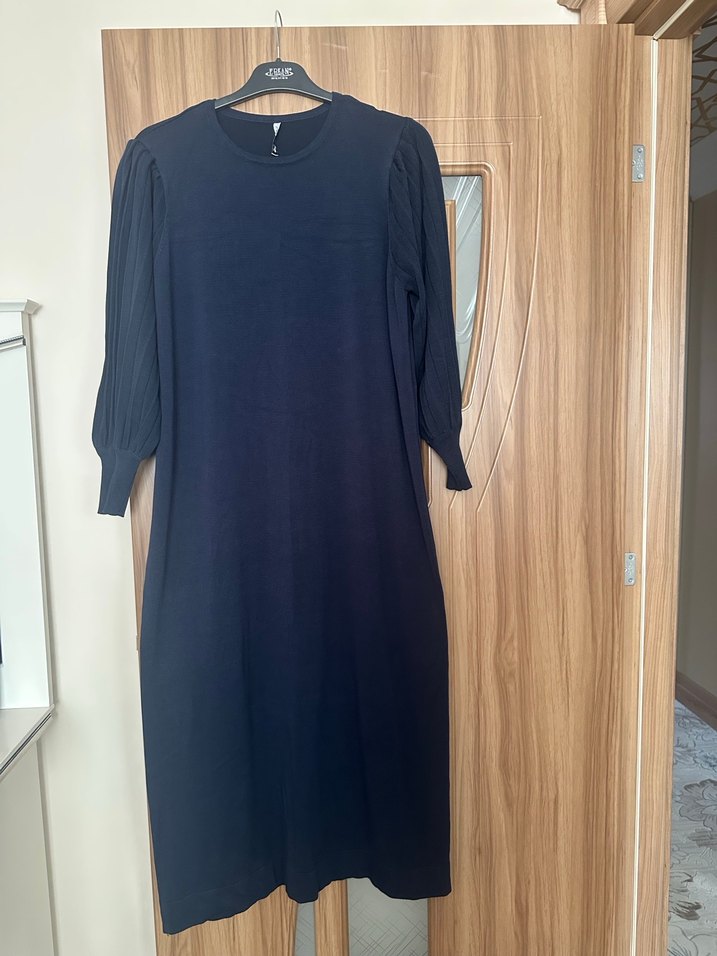 Kolları pilise detaylı triko elbise standart beden ama 40,44 beden uyumludur