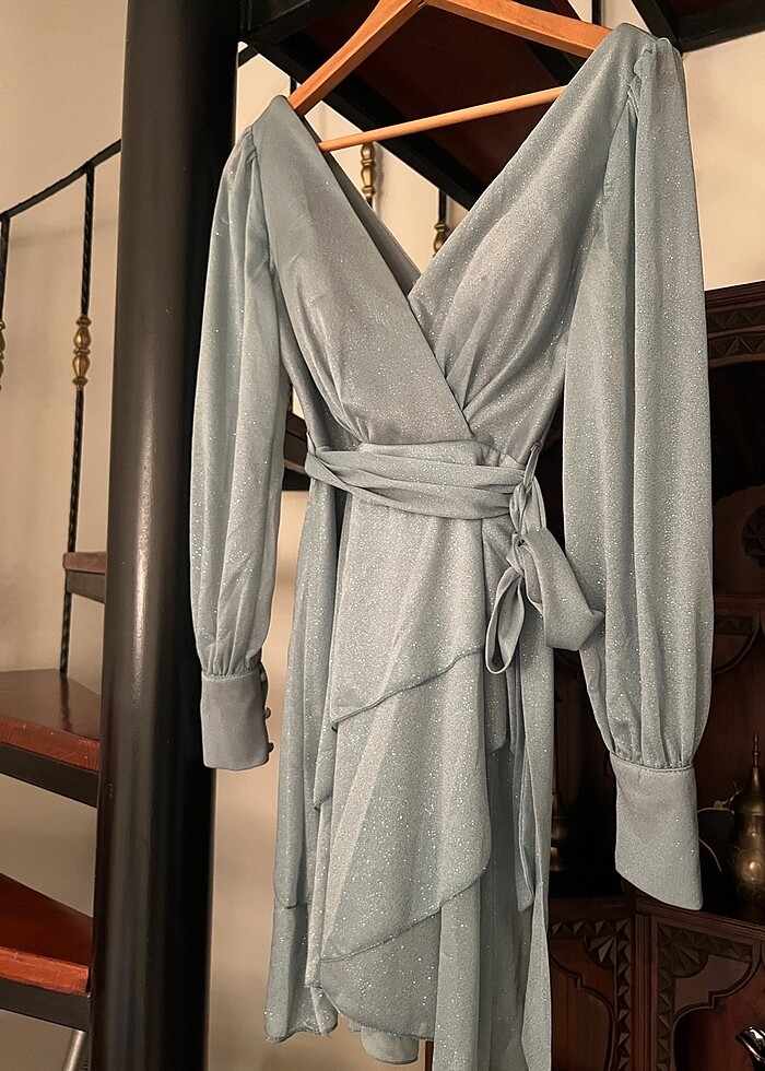 kolları transparan tül simli abiye kemer detaylı kolları düğmeli. göğüs dekolteli