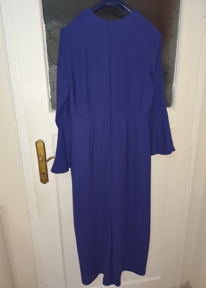 Elbisenin kol detayları çok hoş duruyor. 42-44 bedene uyumludur. Tam kalıptır.
