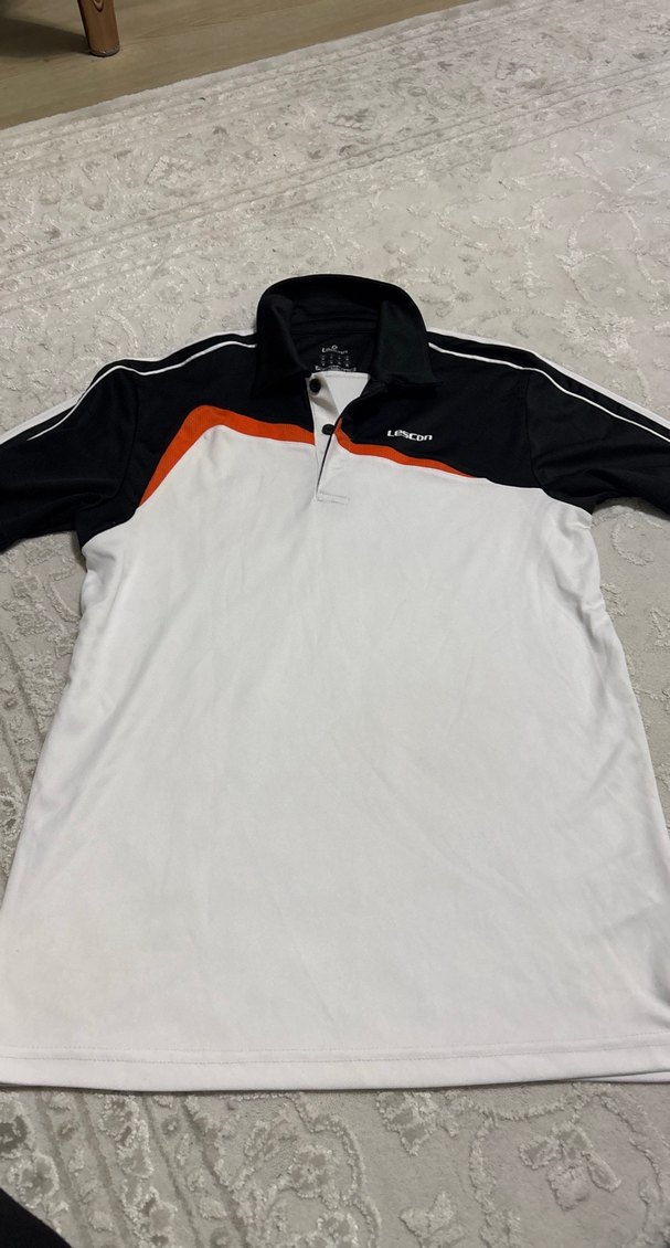 Bu erkek polo tişörtü kısa kollu, yakalı ve vücuda oturan kesime sahiptir. Beyaz temel rengi koyu detaylar ve cırt cırtlı özelliği içerir, yumuşak ve sıcak kumaştandır, dış mekan için uygundur. ️