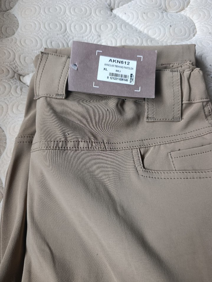 Bej renkli, Kolombiya model kumaş pantolon. Düz, polyester kumaştan, rahat ve sokak stiline uygun. Outdoor kullanım için uygun. AKN512 kodlu. XL beden bej rengi