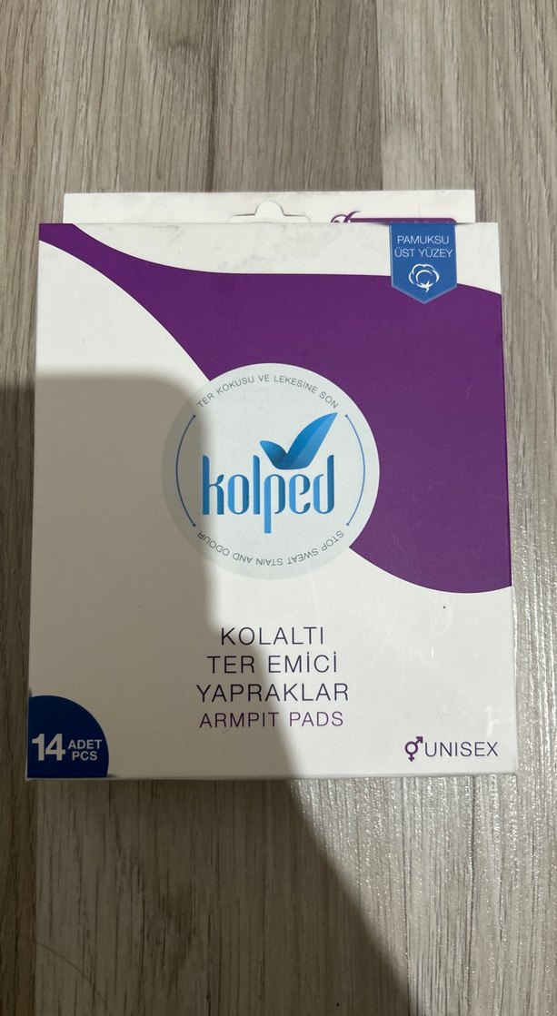 Kolped unisex mor renkli, pamuksu yüzeyli ter emici kolaltı pedleri. Ter ve lekelere karşı koruma sağlar. Paket içinde 14 adet bulunur. Yaz aylarında çok kullanışlı oluyor bende çok fazla olduğu için satmaya karar verdim