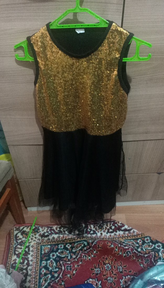 Kolsuz, Altın Renkli Parlak tüllü kız elbise