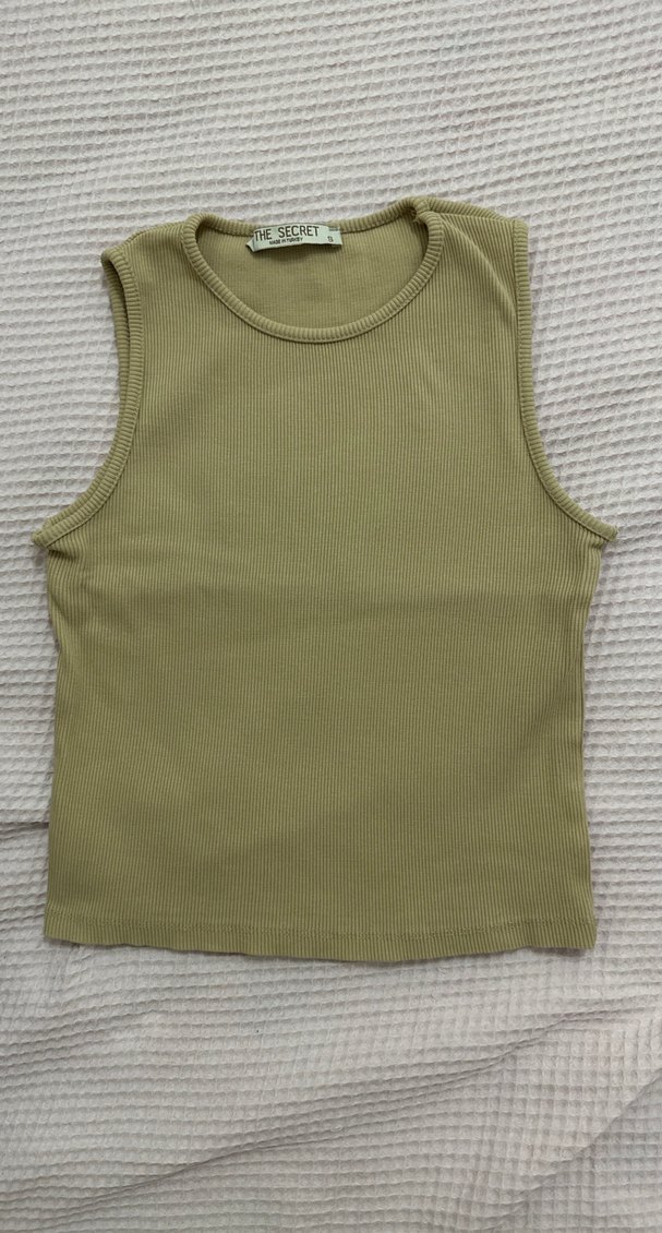 Kolsuz Basic top crop sıfır kol Bej