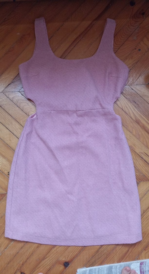 Kolsuz, vücuda oturan, bej pastel elbise beli oturtturmalı hediye geldi kilo aldığım için satıyorum