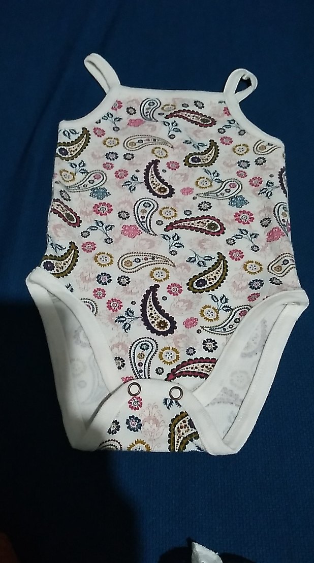 Kolsuz, çok renkli yılan desenli ve dantel detaylı bebek body. Askısız yaka ve alt kısmında çıtçıtlı kapanış bulunur. 1.5 yaş yaziyor ama küçük duruyor 3 ve 6 ay için uygundur, hiç kullanılmadı küçük geldiği için