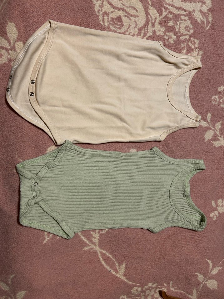 Hello baby marka bej ve pastel yelil renklerde, kolsuz, yuvarlak yaka bebek bodyleri. Rahat ve şık tasarımıyla günlük giyim.9-12 ay yeşil olan likralıdır o nedenle küçük duruyor ikili fiyatıdır