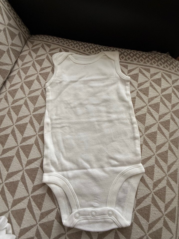 Kolsuz, askısız yakalı beyaz bebek body, sade ve şık tasarıma sahip. Yumuşak ve rahat kumaşla günlük kullanım için uygundur. Carter’s 9 ay Bebek Bady. Tanesi 175 tl dir. 14 adet mevcuttur. İlan açtırınız.