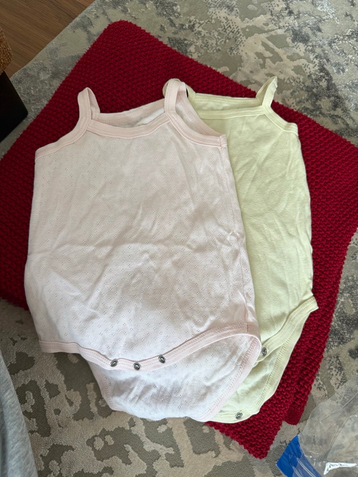 Kolsuz, askısız yaka ve düğmeli beyaz bebek body. Yumuşak, pastel renkli kumaştan üretilmiştir.