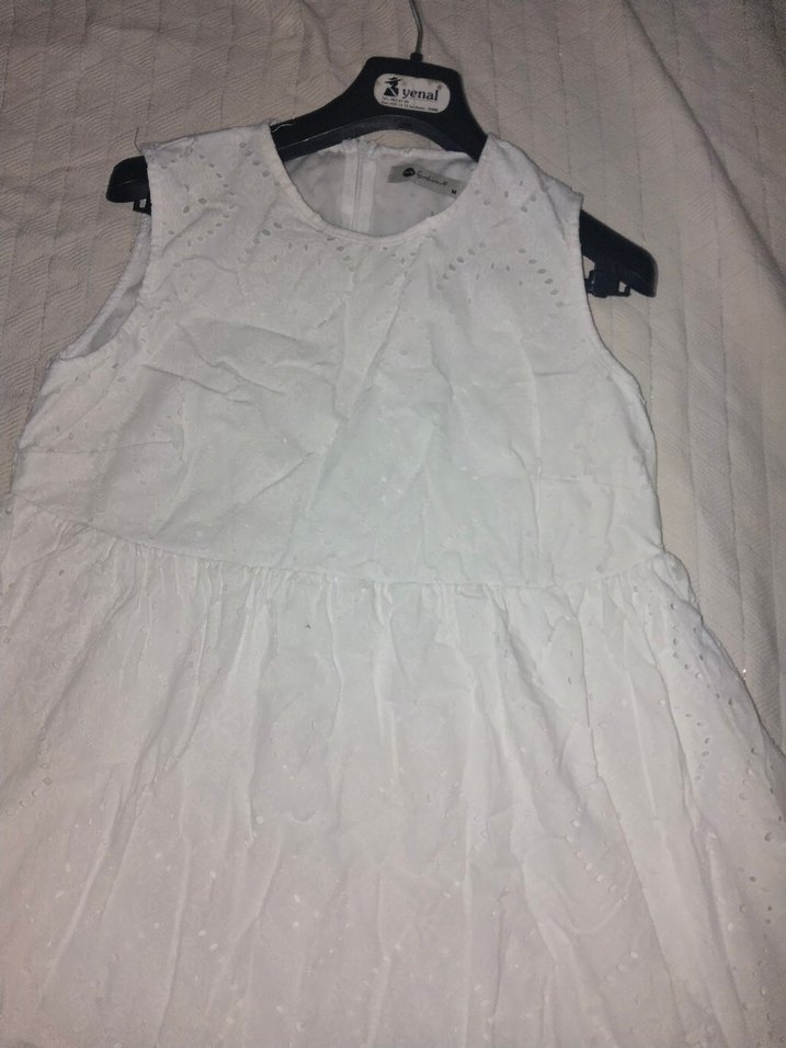 Kolsuz, fırfırlı detaylı, salaş kesim beyaz kız bluzu. Yuvarlak yaka ve sentetik kumaştan yapılmıştır. Trend sokak giyimi için uygundur.