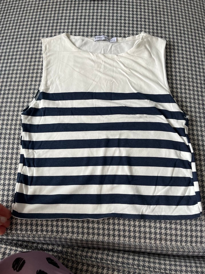 Kolsuz Beyaz Lacivert Çizgili üst
