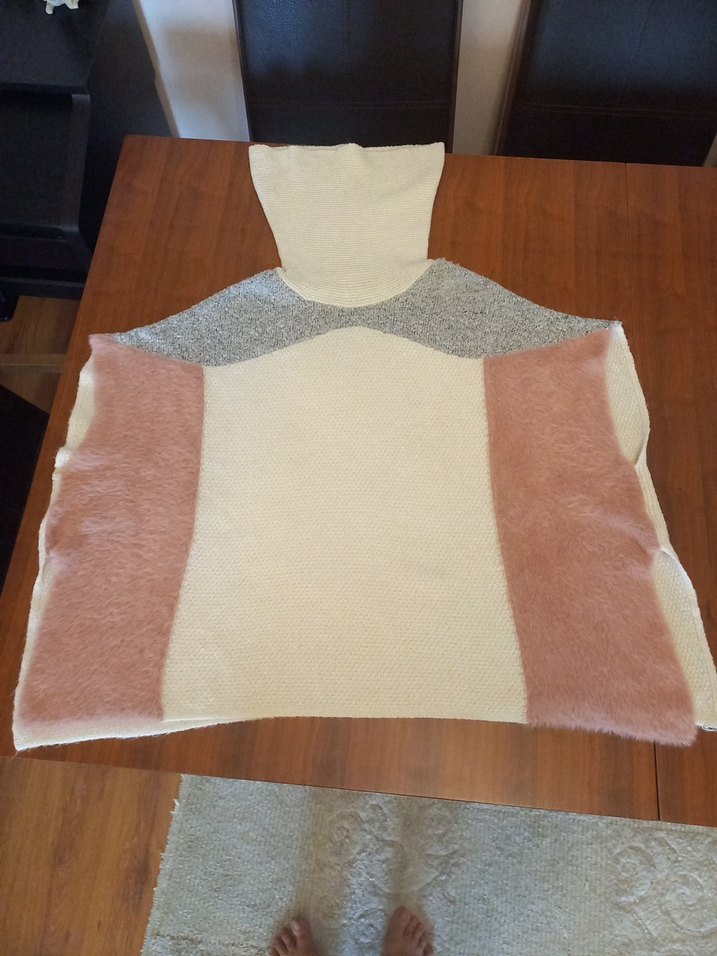 Kolsuz, boğazlı ve yanları kürklü kadın kazak. Bej, gri ve yumuşak pembe tonlarıyla midi boyda, rahat kesim. M-L için de uygundur