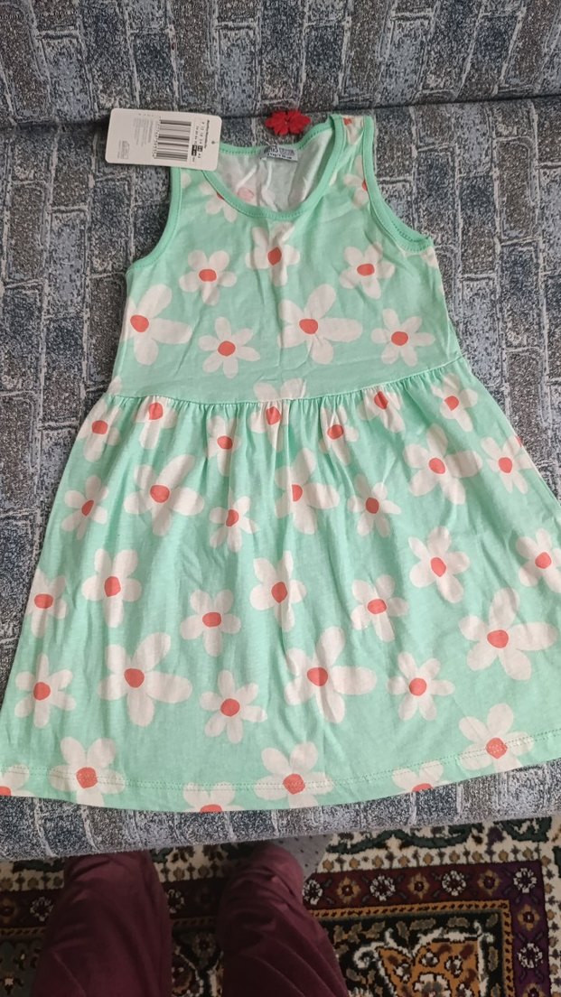 Kolsuz, bol kesim kız elbisesi, pastel çiçek deseni ve fırfır detaylarına sahip. Yumuşak sentetik kumaştan, günlük kullanım için uygun.