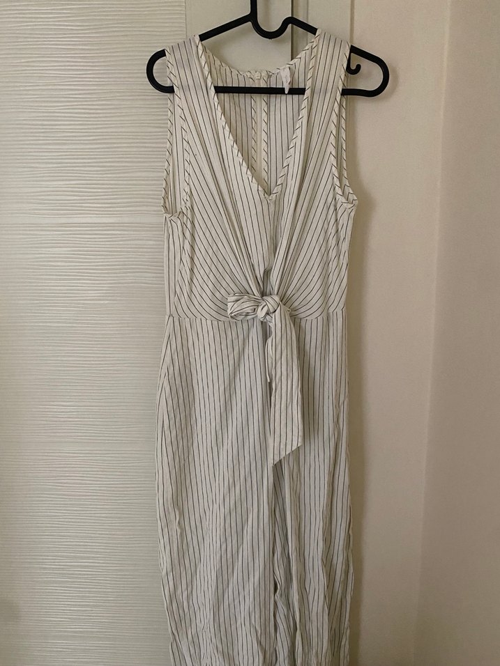 Kolsuz Çizgili V Yaka Uzun Keten tulum