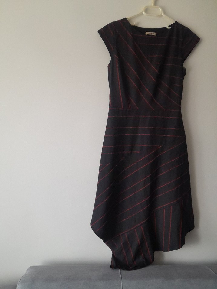 Kolsuz, drapeli midi elbise, kayık yaka ve regular kesim. Siyah rengi ve çağdaş tarzı ile ofis ve avant-garde stil için uygundur.